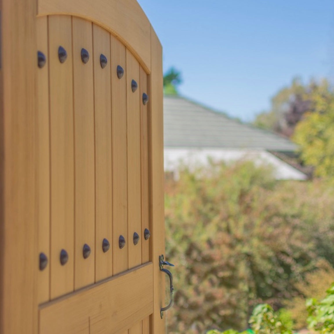 Enhance the charm of your walkway with our exquisite hacienda-style wood gate.