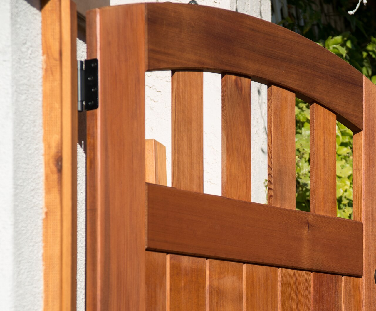 Introducing our charming picket style arch top wood gate, meticulously crafted from the finest Western Red Cedar.
