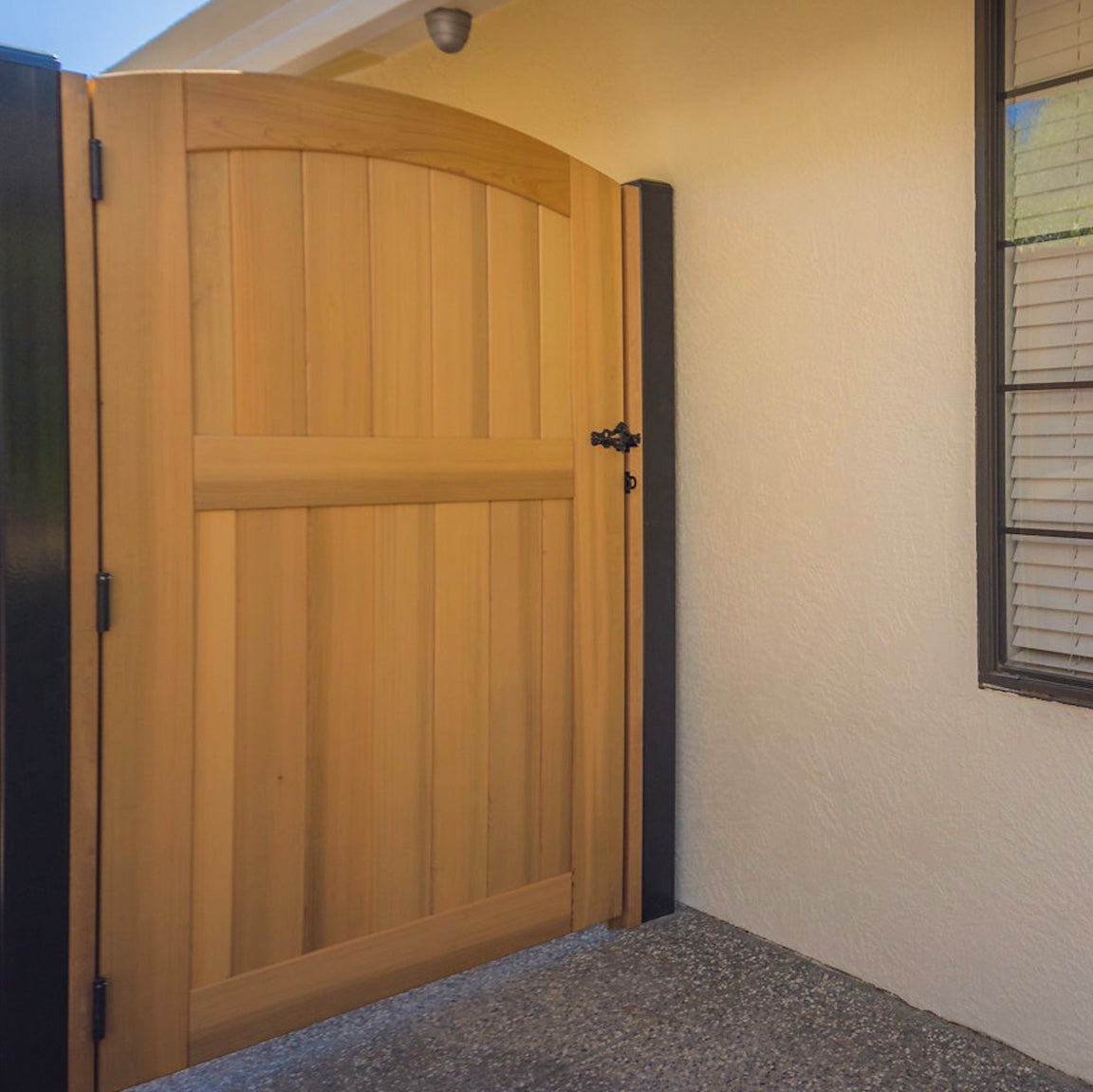 Transform your entryway with our premium Western Red Cedar Signature gate. Meticulously hand-crafted from select clear, vertical grain premium lumber. Each gate features a graceful arched top design that adds timeless elegance to any garden, pathway, or yard setting.