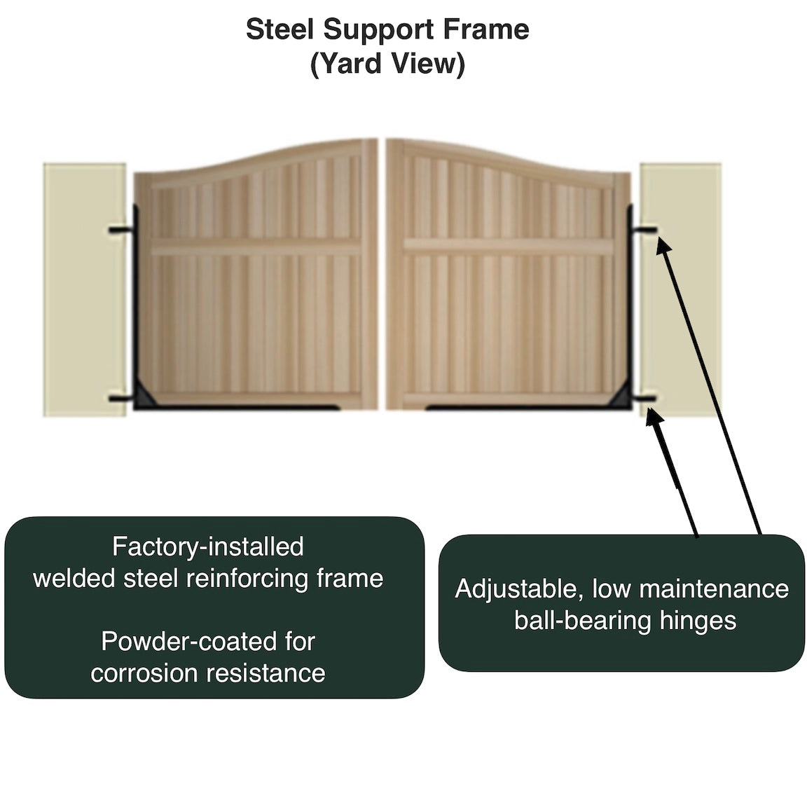 Our driveway wood gates feature a robust steel support frame, providing unmatched stability. Plus, heavy-duty ball bearing hinges ensure smooth operation for years to come