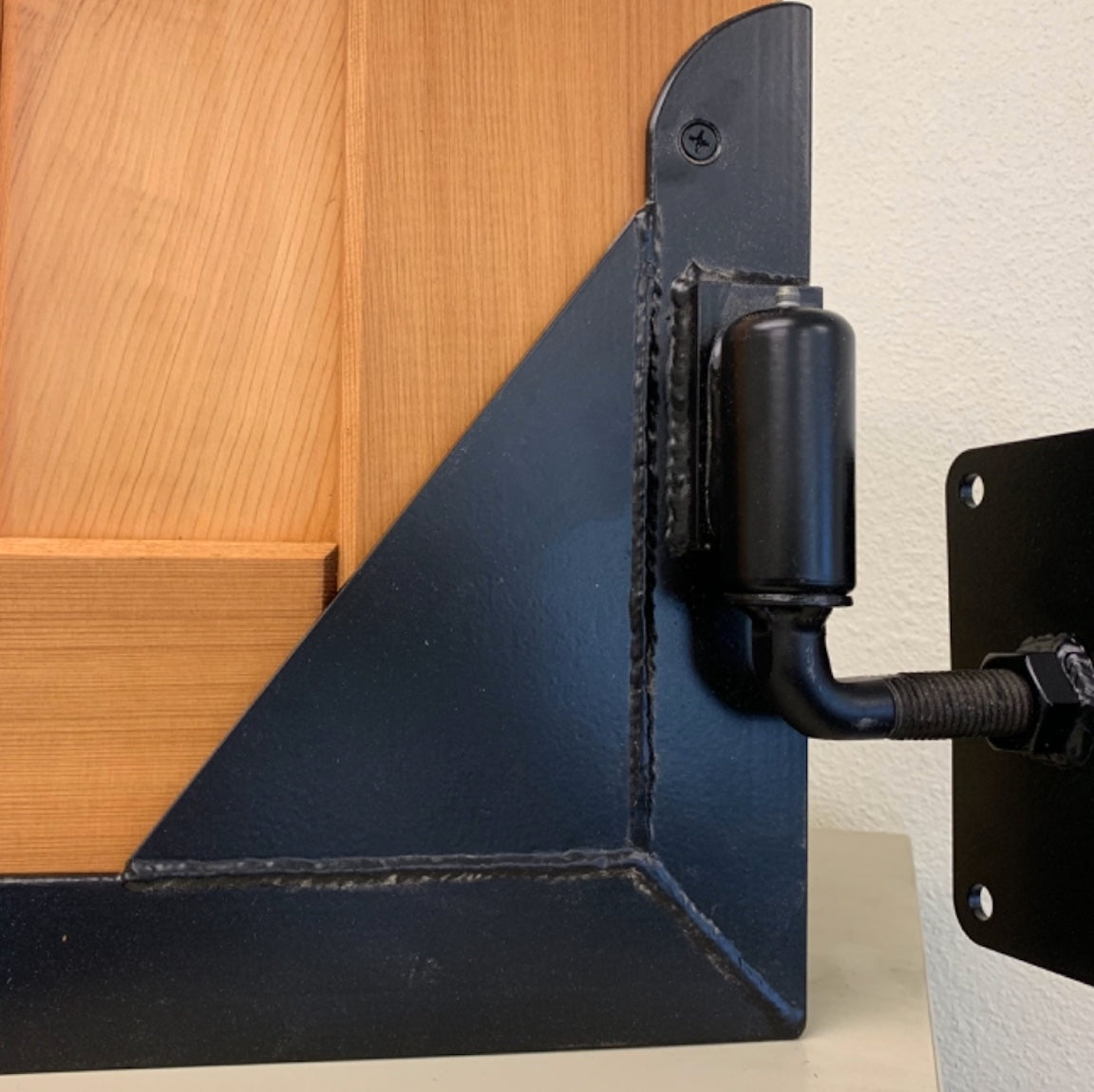 Driveway gate feature innovative hinge & bracket system for easy attachment to posts or walls. Threaded bolt offers adjustability and stability over time.